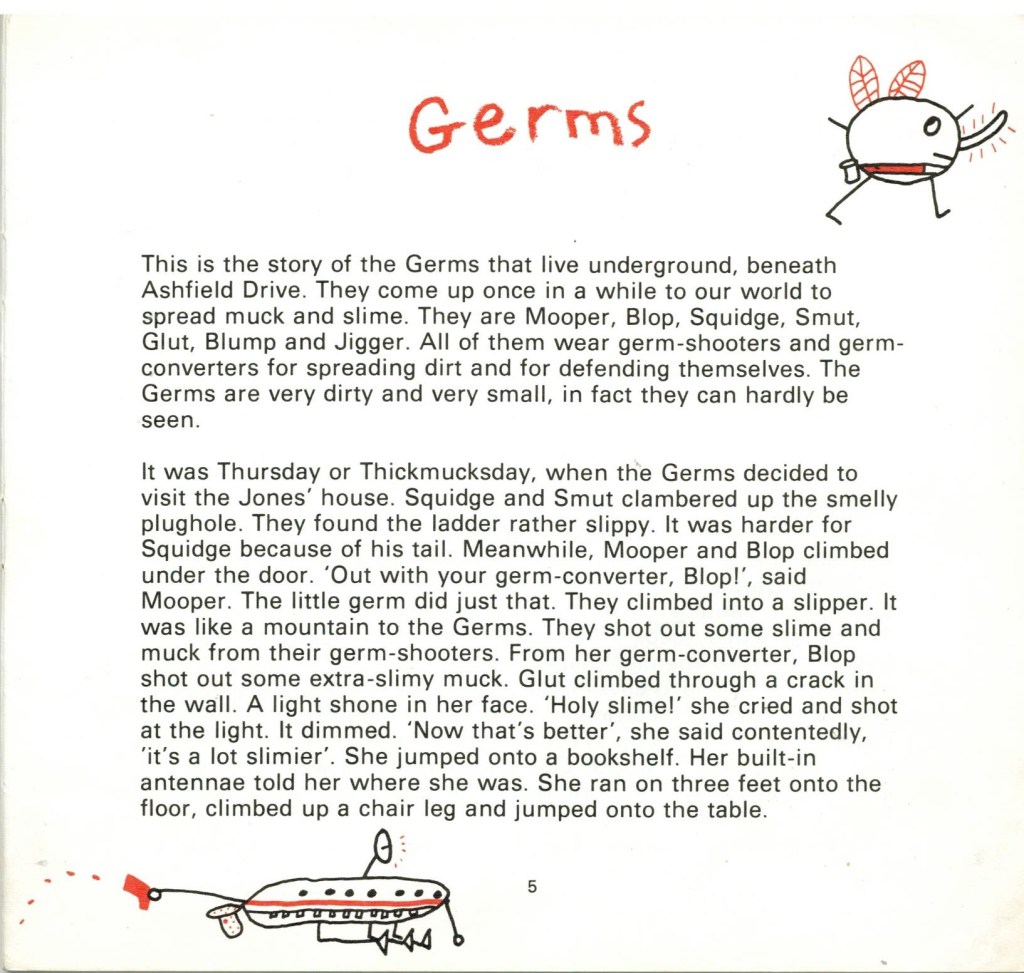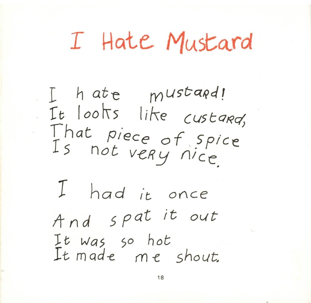 Here’s a scan of Germs, Shane’s story, and of the poem that gave the book it’s title, the charming I Hate Mustard, by a young man named Luke T Thompson.